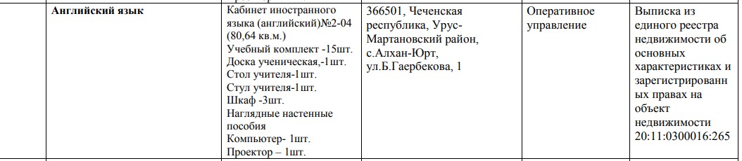 Полный список оборудованияКабинет Чеченского языка и литературы