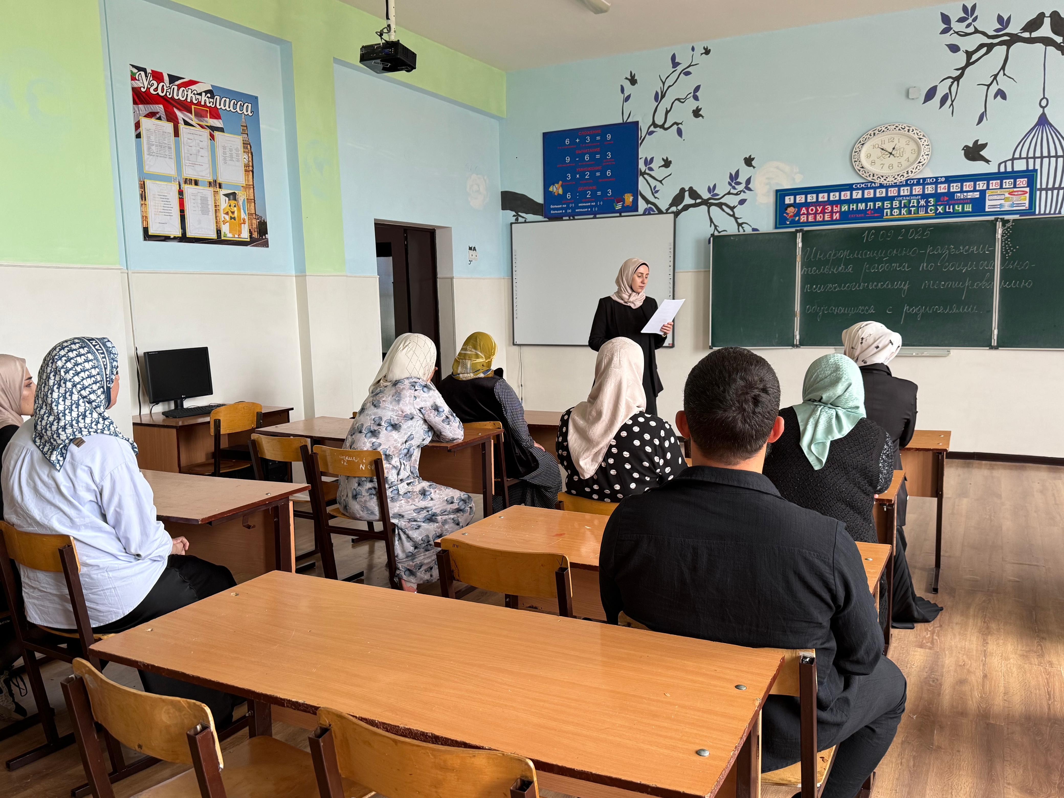 В МБОУ «СОШ №4 с.Алхан-Юрт» с членами комиссии и классными руководителями была проведена разъяснительная беседа на тему: «Проведение социально-психологического тестирования с учащимися». Цель: информирование о целях и организации проведения СПТ.