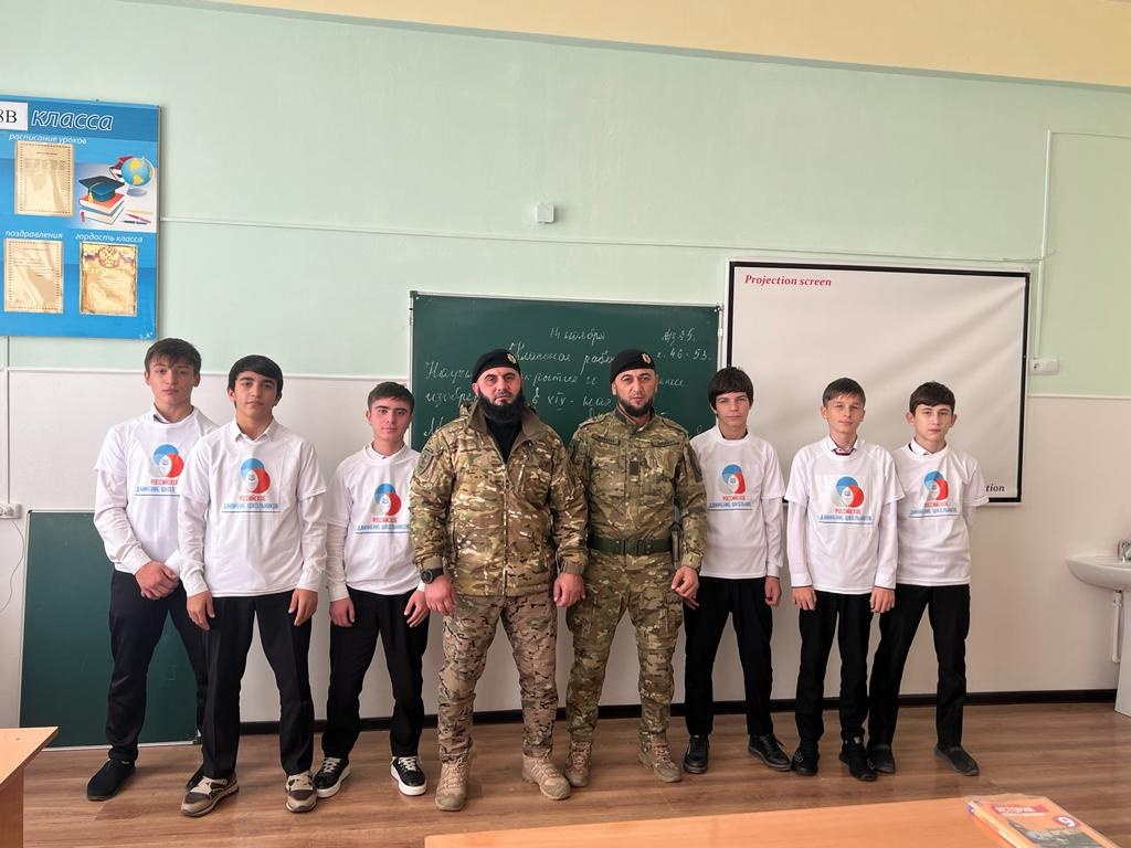 14.11.2023В целях патриотического воспитания и воспитания идеологии служения Отечеству в МБОУ «СОШ№4 сАлхан-Юрт» 14 ноября 2023 года прошла встреча с участниками СВО на Украине: капитаном полиции, командиром роты ОМОН «Ахмат-1» Чумаевым Алиханом Ильясовичем и лейтенантом, командиром спецвзвода 3-его оперативного батальона Бекбулатовым Вахой Хасановичем.