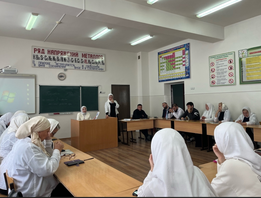 04.10.2024ПЕДСОВЕТ ПО ИТОГАМ I-Й ЧЕТВЕРТИ В МБОУ «СОШ № 4 с.Алхан-Юрт» состоялся педсовет, на котором были обсуждены итоги обучения за первую четверть, подведены итоги проведенных воспитательных мероприятий.На педсовете заместителем директора по УР Танзилой Исаевной были представлены результаты успеваемости учащихся за первый учебный период 2-9 классов. По итогам анализа данных было отмечено положительное развитие учебных навыков у значительной части школьников. Были также выявлены отдельные проблемные аспекты, которые будут учтены в дальнейшей работе учителей.В рамках педсовета были также подведены итоги проведенных воспитательных мероприятий. Заместитель директора по ВР Лия Шамаудиевна поделились результатами внеурочной работы, включающей совместные культурно-познавательные мероприятия, спортивные соревнования. Было отмечено значительное повышение активности и интереса школьников к техническим, творческим и физическим аспектам их развития.В конце педсовета директор школы Дашаева Петимат Имрановна наградила грамотами и благодарственными письмами за активное участие в жизни школы классы и классных руководителей по итогам I-й четверти.Дала аьтто бойла!Дала т1аьхье беркате йойла! В МБОУ «СОШ № 4 с.Алхан-Юрт» состоялся педсовет, на котором были обсуждены итоги обучения за первую четверть, подведены итоги проведенных воспитательных мероприятий.На педсовете заместителем директора по УР Танзилой Исаевной были представлены результаты успеваемости учащихся за первый учебный период 2-9 классов. По итогам анализа данных было отмечено положительное развитие учебных навыков у значительной части школьников. Были также выявлены отдельные проблемные аспекты, которые будут учтены в дальнейшей работе учителей.В рамках педсовета были также подведены итоги проведенных воспитательных мероприятий. Заместитель директора по ВР Лия Шамаудиевна поделились результатами внеурочной работы, включающей совместные культурно-познавательные мероприятия, спортивные соревнования. Было отмечено значительное повышение активности и интереса школьников к техническим, творческим и физическим аспектам их развития.В конце педсовета директор школы Дашаева Петимат Имрановна наградила грамотами и благодарственными письмами за активное участие в жизни школы классы и классных руководителей по итогам I-й четверти.Дала аьтто бойла!Дала т1аьхье беркате йойла!