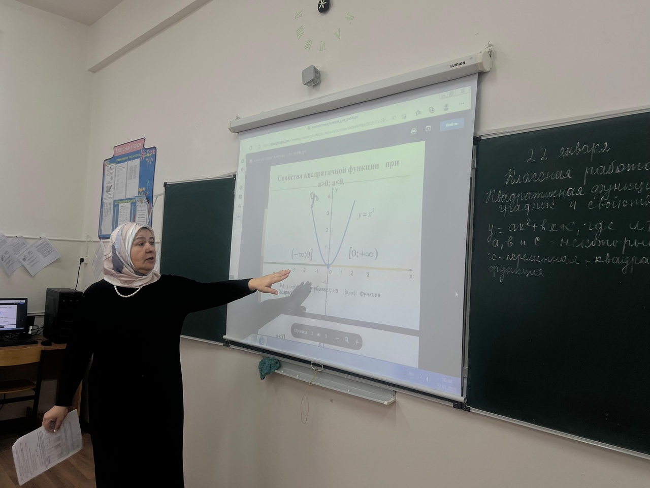 В нашей школе состоялся увлекательный урок алгебры, который провела наш замечательный учитель математики Дадаева Л.Ш. для 9 Г класса. Тема урока – «Квадратичная функция, её график и свойства» – оказалась не только познавательной, но и очень интересной!На уроке ученики познакомились с основными характеристиками квадратичной функции, изучили её график и свойства. Дадаева Л.Ш. объяснила, как выглядит парабола, и какие моменты нужно учитывать при её построении. Ученики активно участвовали в обсуждении, задавали вопросы и решали задачи, что сделало урок интерактивным и увлекательным.Кроме того, учитель предложила ребятам самостоятельно нарисовать графики различных квадратичных функций, что позволило каждому применить полученные знания на практике. Все были в полном восторге от процесса!Урок прошёл в дружеской и творческой атмосфере, а полученные знания, безусловно, помогут ученикам в дальнейшем изучении математики.